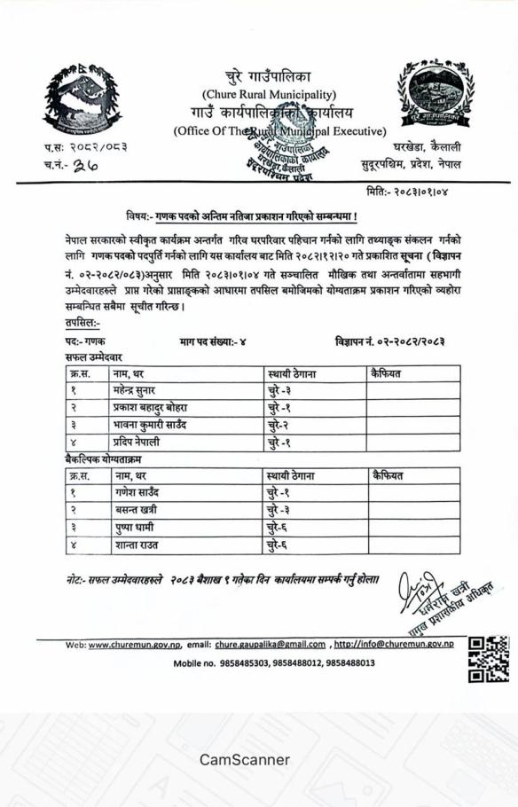 गणक पदको अन्तिम नतिजा प्रकाशन गरिएको सम्बन्धमा ।