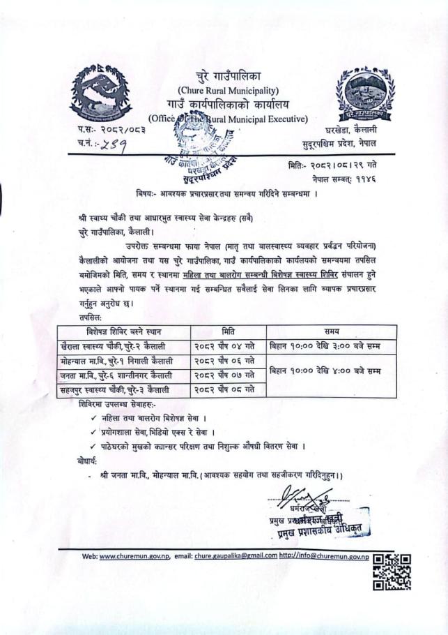 आवश्यक प्रचार प्रसार तथा समन्वय गरि दिने सम्बन्धमा ।