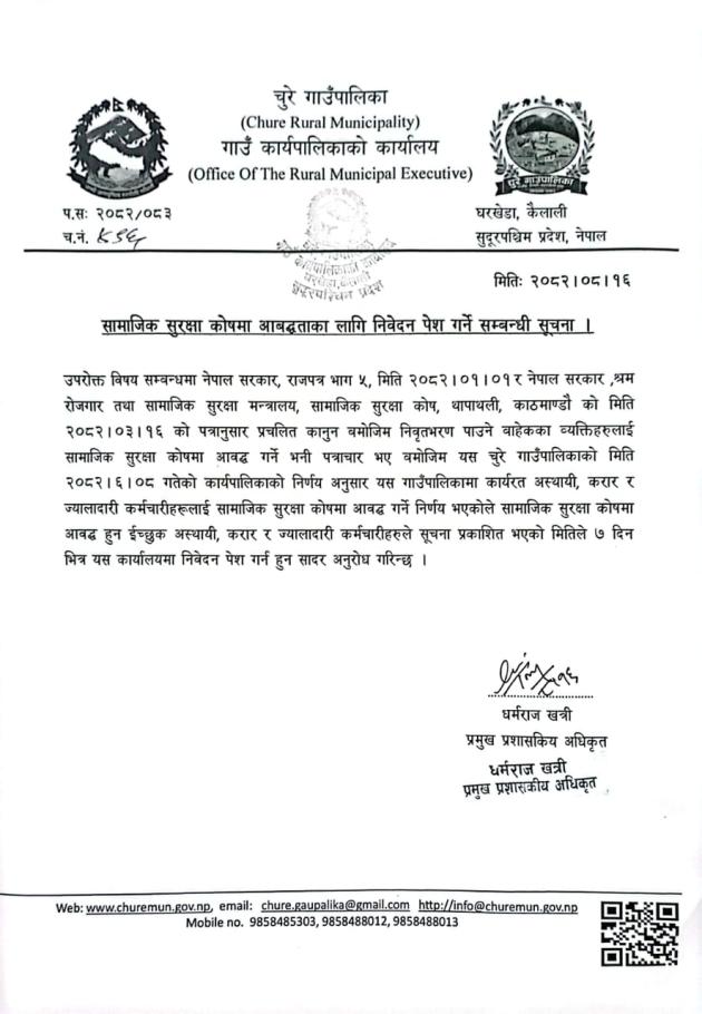 सामाजिक सुरक्षा कोषमा आवद्धताका लागि निवेदन पेश गर्ने सम्बन्धी सूचना ।